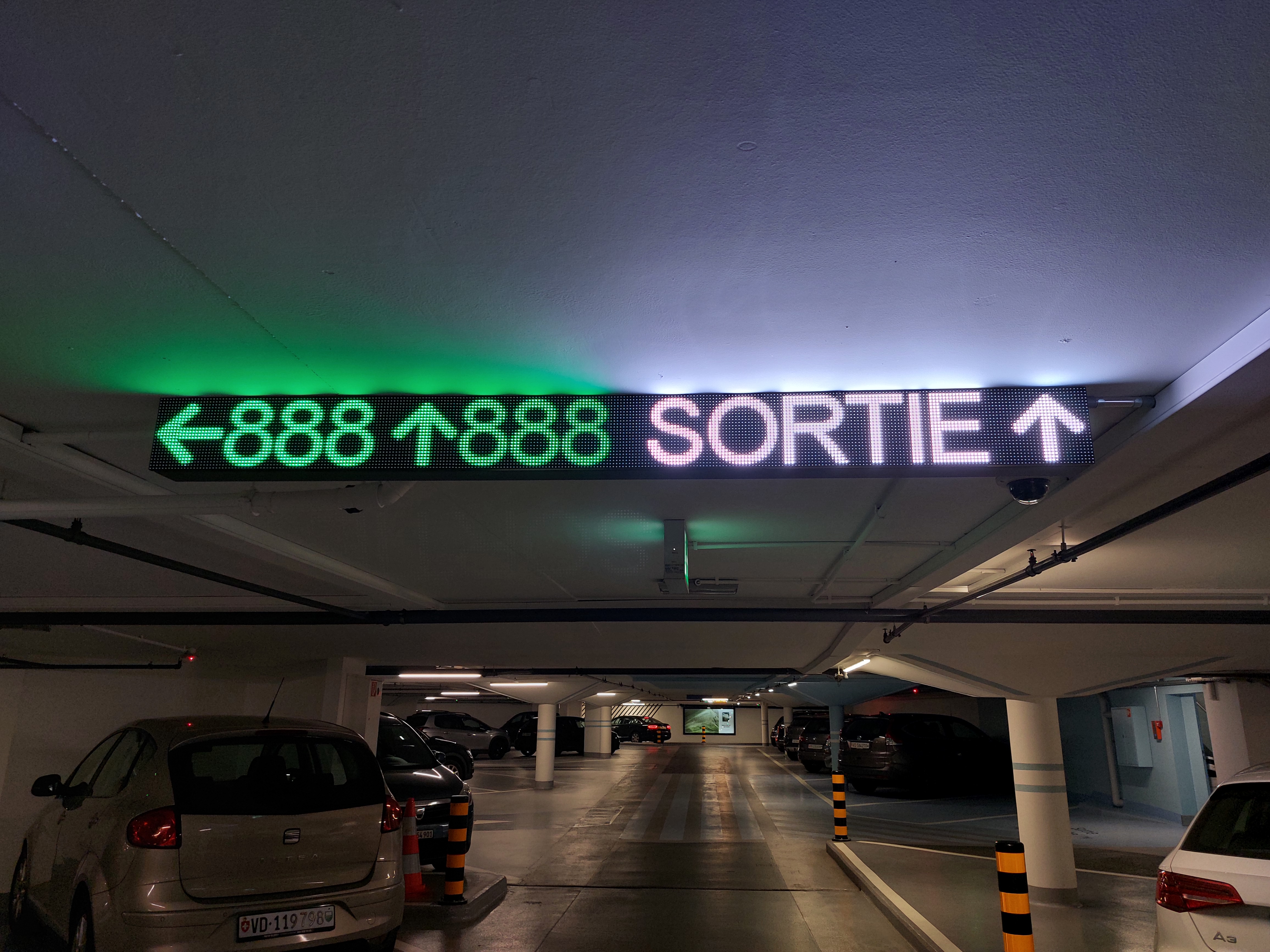 - La possibilité d'alterner entre un message dédié et les informations relatives au parking.