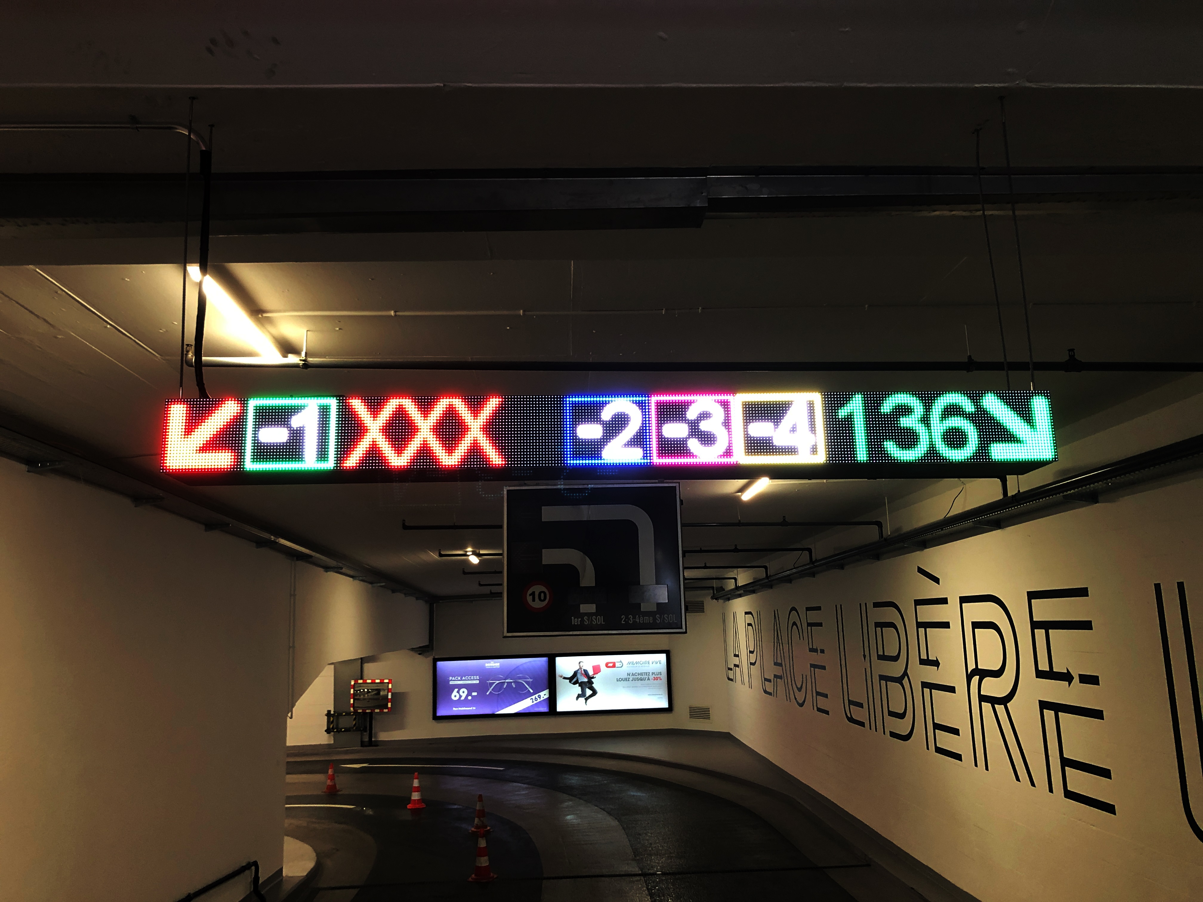 Nos solutions se basent sur des afficheurs LED et/ou écran LCD afin d'informer, en temps réel, les automobilistes et de les guider jusqu'à la prochaine place disponible.