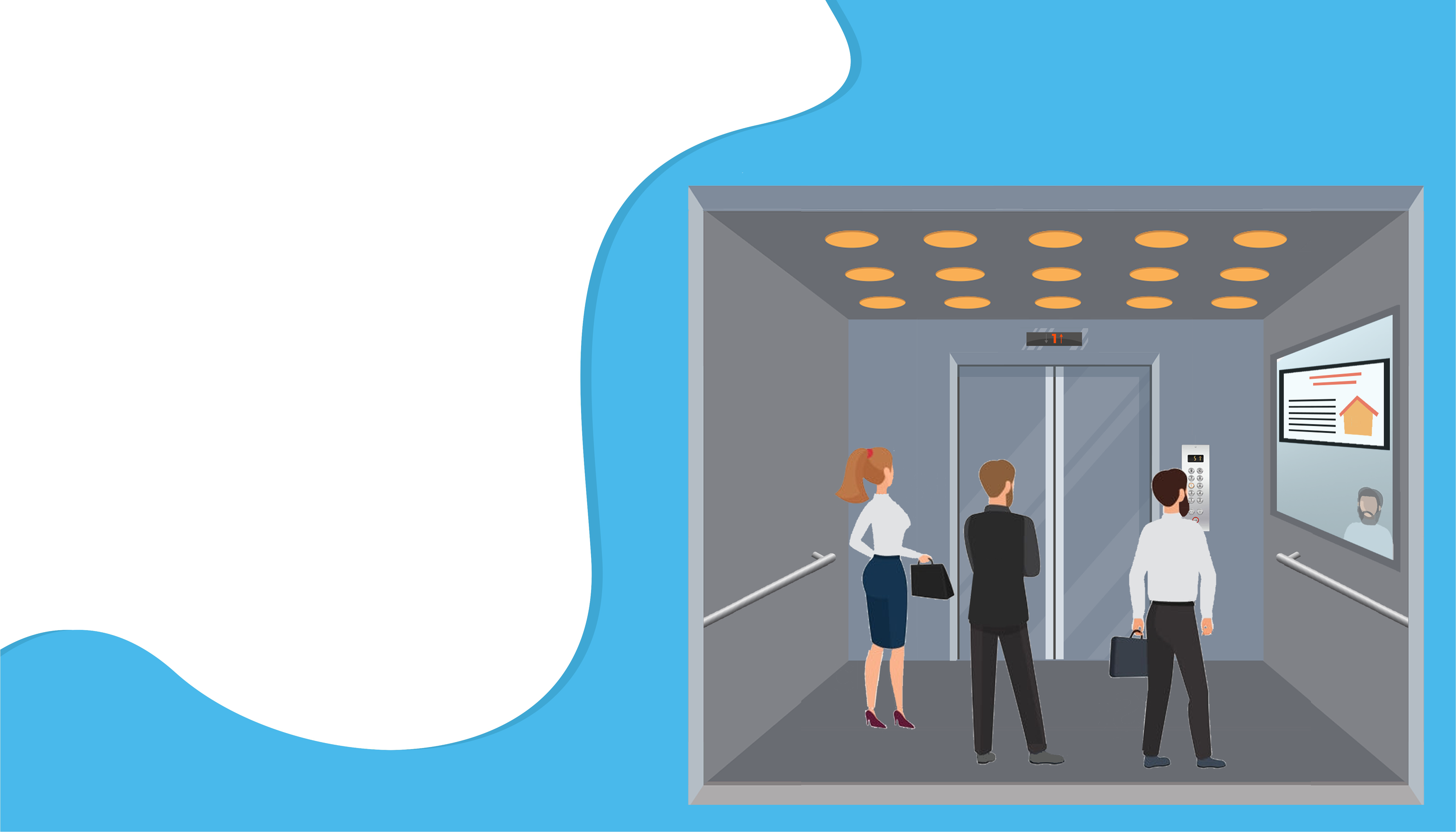 L'écran dynamique est installé derrière un miroir dans un ascenseur et transmet, le temps du trajet, les informations de votre choix: